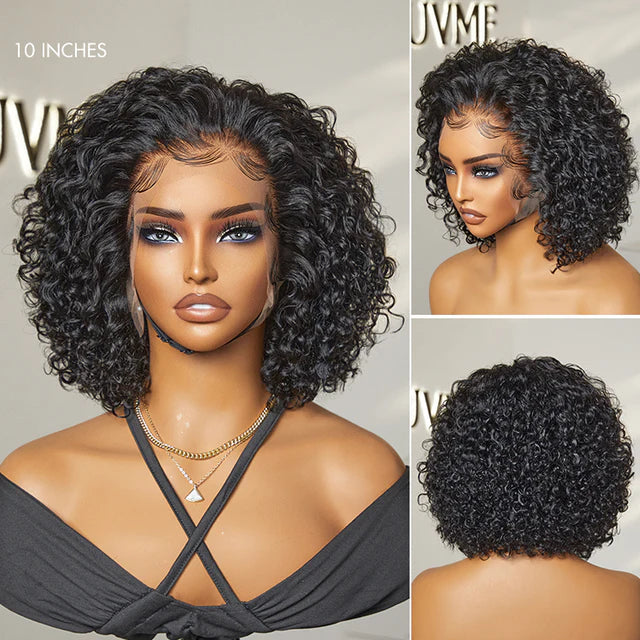 Ultra Natural Slicked Back Short Curly Wig Glueless Ear-to-ear Wide T Lace Front Wig
